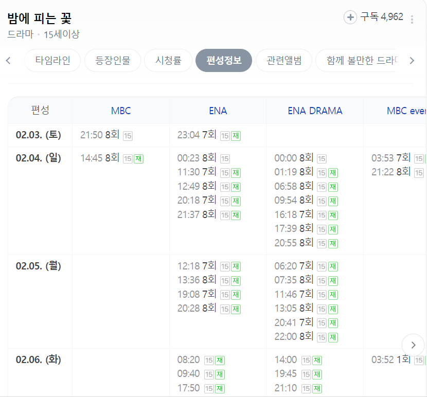 밤에 피는꽃 드라마는 OTT 채널 웨이브, 쿠팡플레, 시리온 등에서 재방송을 볼 수 있으며 공중파 채널에서도 재방송을 볼 수 있습니다.